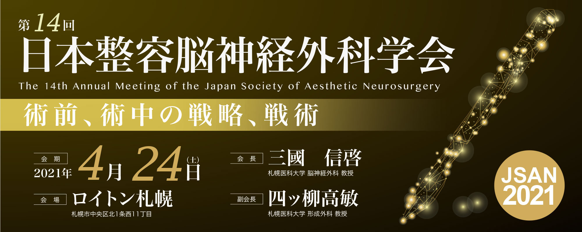 2021年4月23-24日の2日間、札幌(ロイトン札幌ホテル)で開催予定であります、第30回脳神経外科手術と機器学会、第14回日本整容脳神経外科学会、第21回日本術中画像情報学会の3学会の開催形式変更についてご連絡申し上げます。
