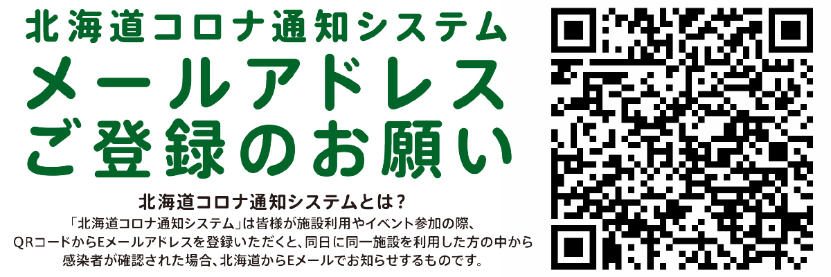 - 新型コロナウィルス接触確認アプリ(COCOA)や「北海道コロナ通知システム」に事前にご登録ください。